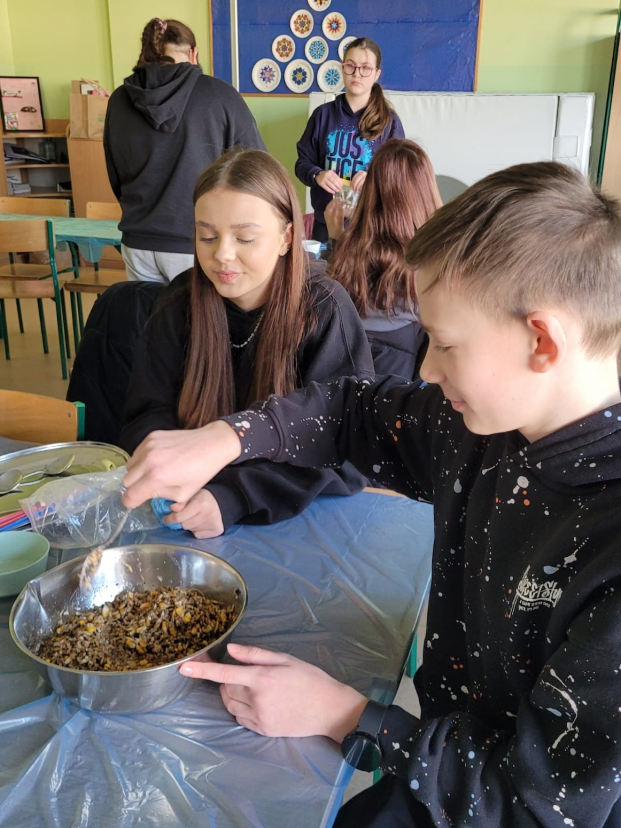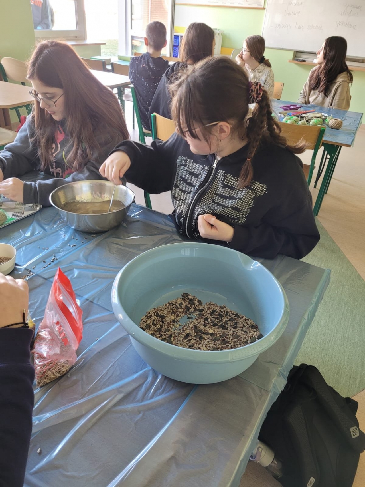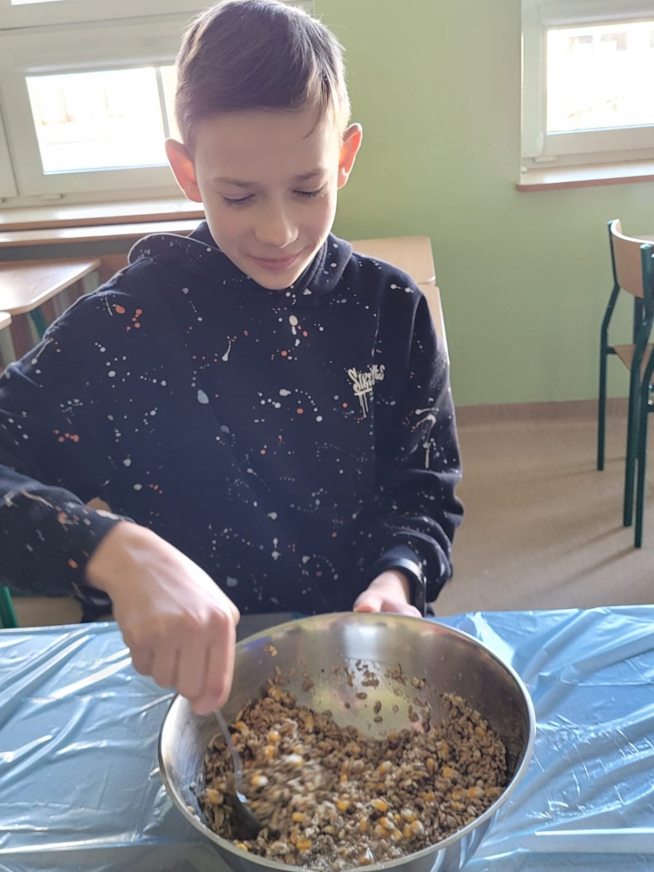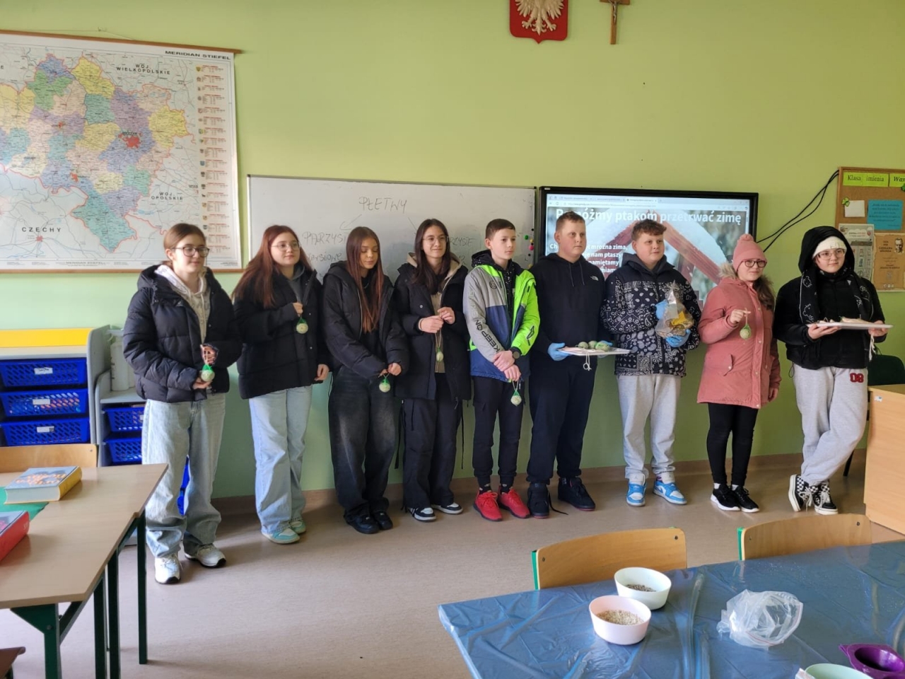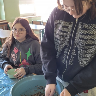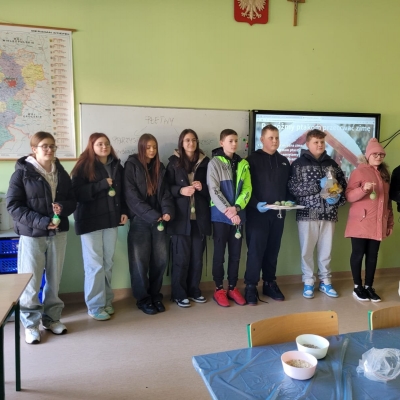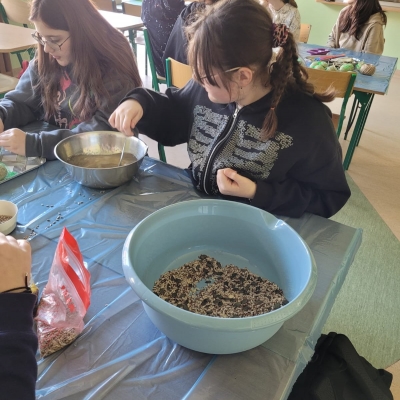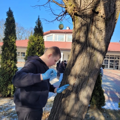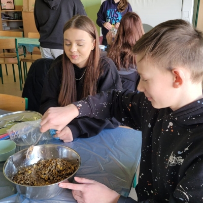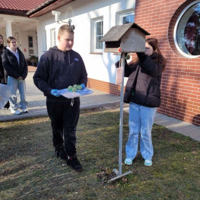 W ubiegłym tygodniu w naszej szkole odbyły się warsztaty tworzenia ptasich przysmaków. Opiekunki szkolnego koła wolontariatu – panie Urszula Dudek i Sylwia Trzeciak opowiedziały, jak mądrze dokarmiać zwierzęta zimą. Następnie przystąpiliśmy do tworzenia ptasich smakołyków, które rozwiesiliśmy na drzewach rosnących wokół terenu naszej szkoły.