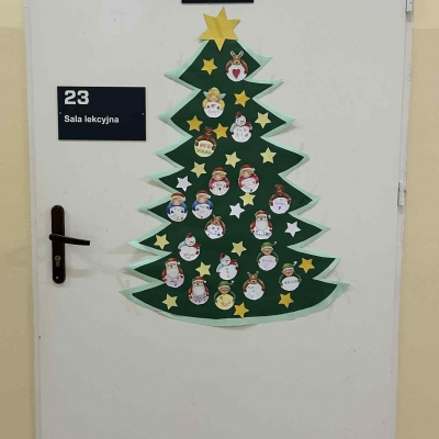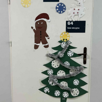 Uczniowie wraz z wychowawcami udekorowali drzwi sal lekcyjnych, nadając im wyjątkowy, świąteczny charakter.