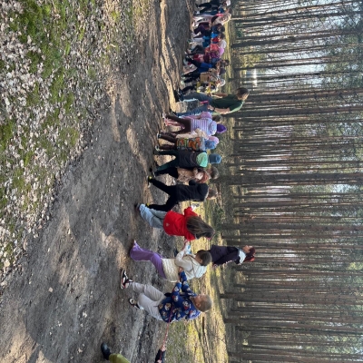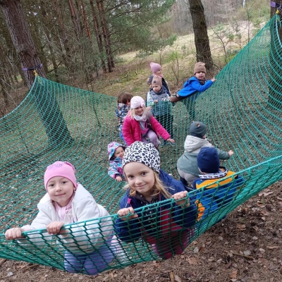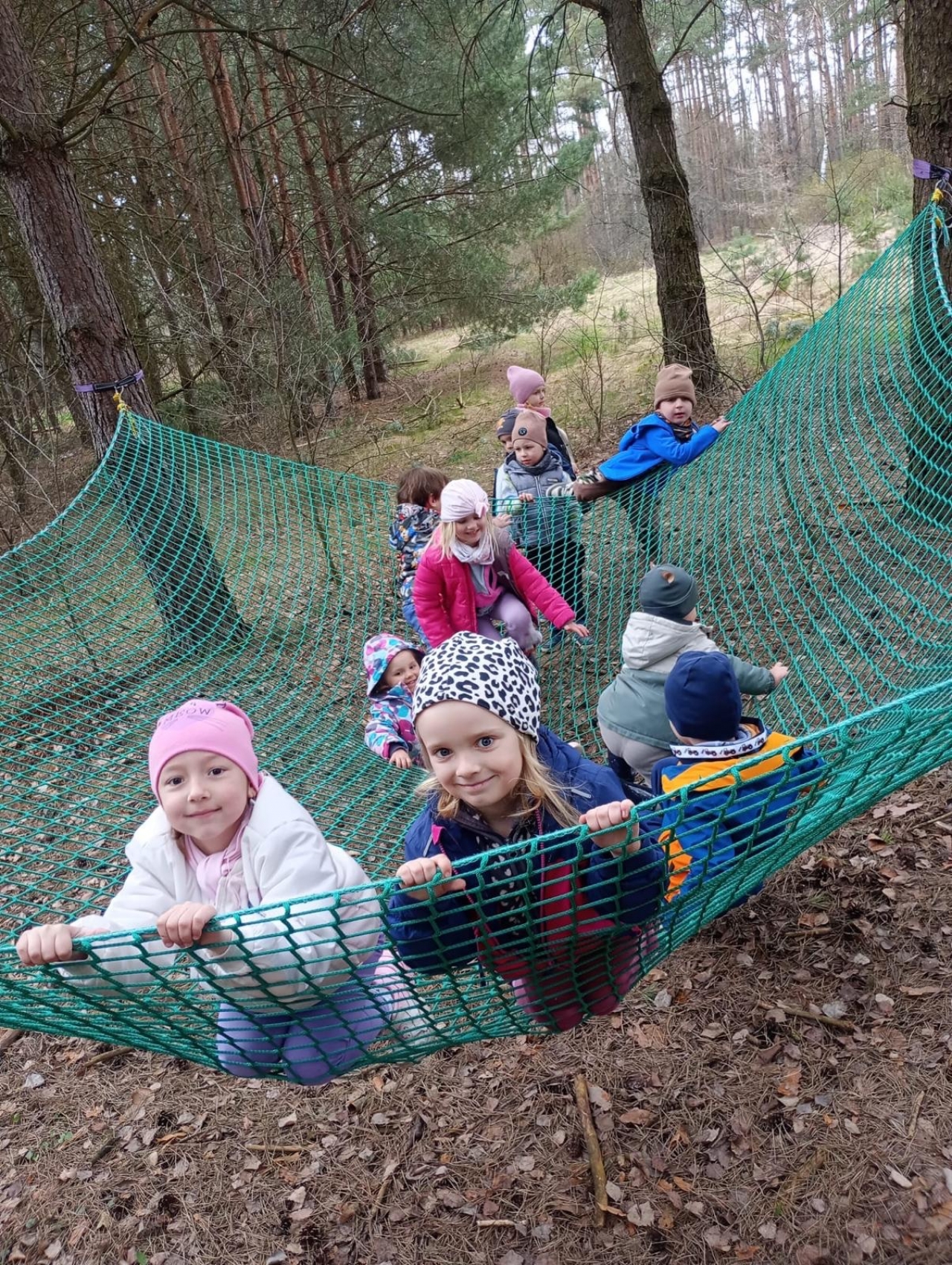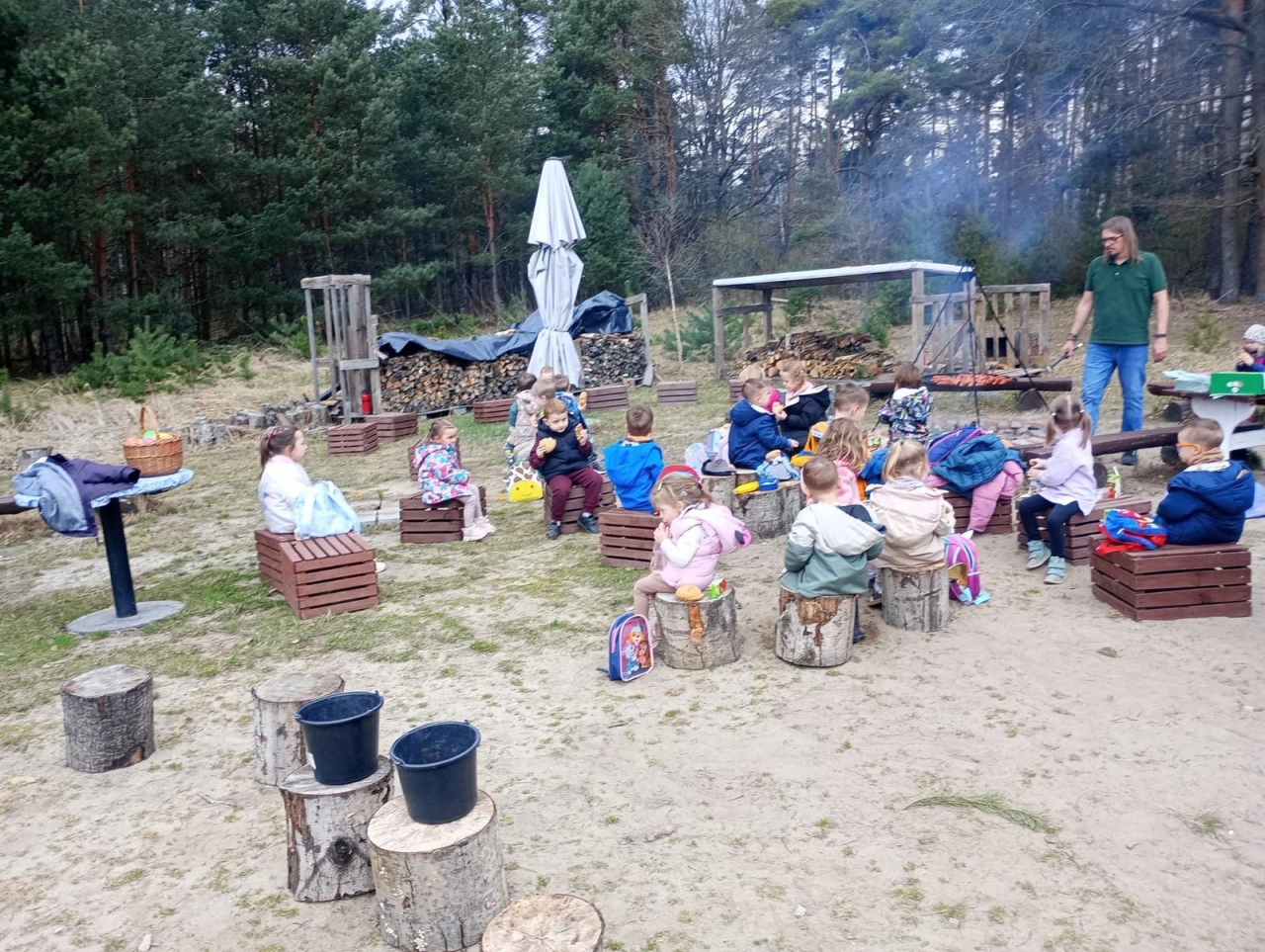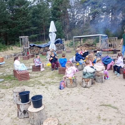Nie zabrakło także czasu na poszukiwanie oznak wiosny w lesie, obserwację przyrody oraz wspólne rozmowy o zmianach zachodzących w otoczeniu. Dużą atrakcją było karmienie króliczków marchewką i kapustą, a także wspólne ognisko. Dzieci miały również czas na swobodną zabawę na terenie obiektu.