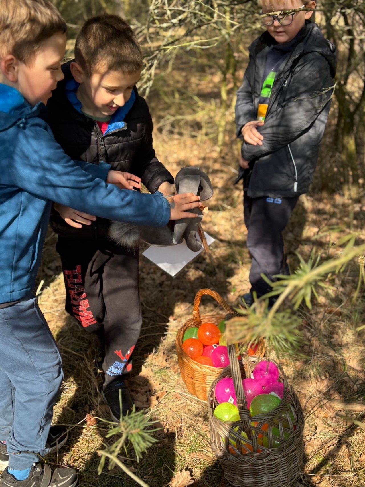 W miniony poniedziałek nasze przedszkolaki wzięły udział w wyjątkowej wycieczce do Domasławic. Po przyjeździe na miejsce dzieci rozpoczęły poszukiwanie zajączków, przy których czekały na nie różnorodne zadania do wykonania. Każda kolejna stacja dostarczała nowych emocji i wyzwań, a przy ostatnim zajączku na przedszkolaki czekała miła niespodzianka –prezent w postaci jajek na wodę.