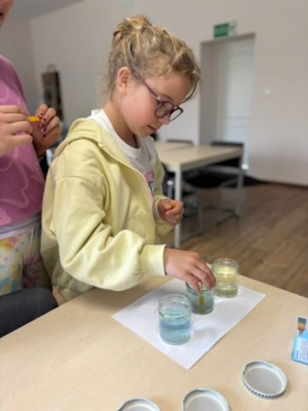 Podczas zajęć uczniowie aktywnie uczestniczyli w rozwiązywaniu zadań, przeprowadzili eksperyment badający odczyn pH wody, a także wzięli udział w edukacyjnej grze poświęconej rzece Odrze.
