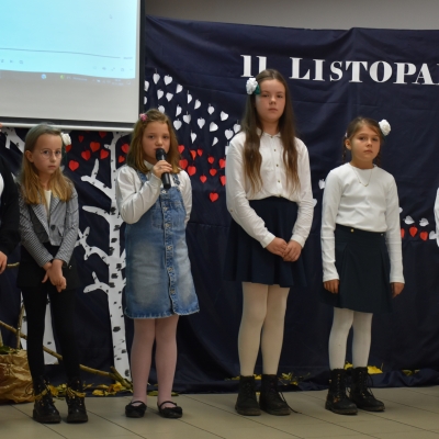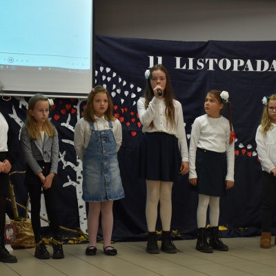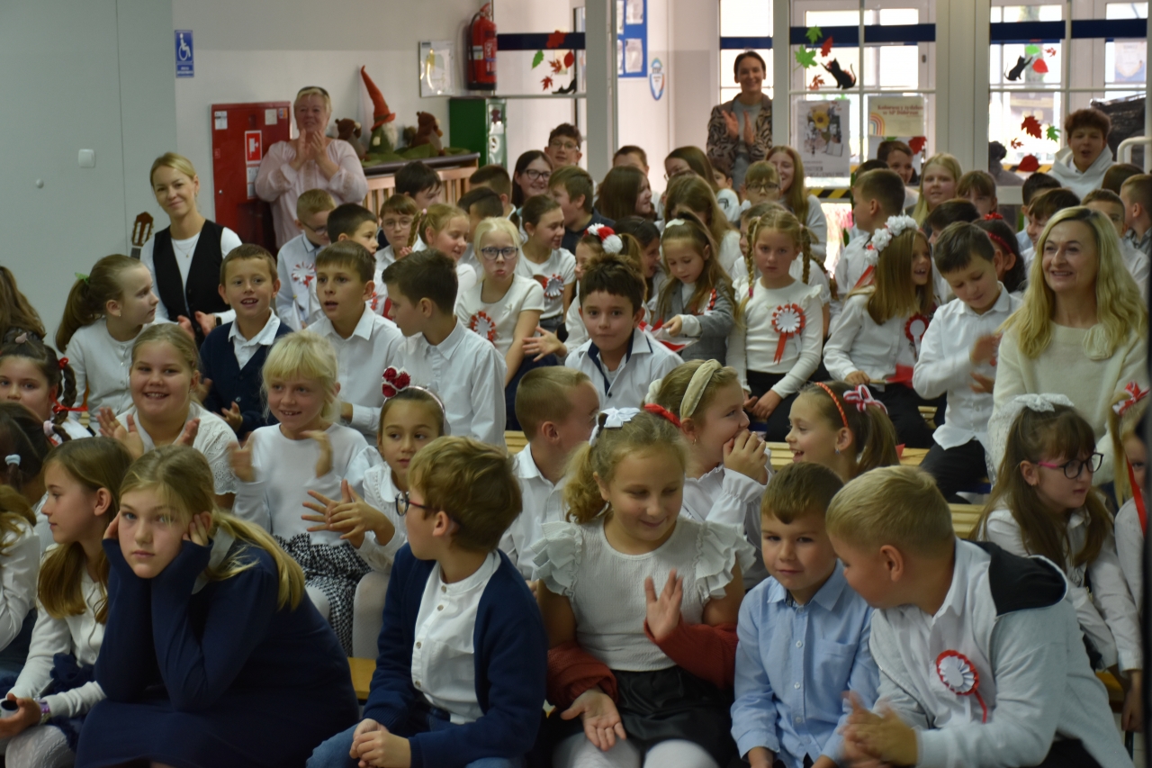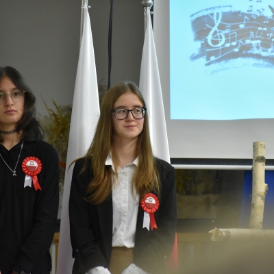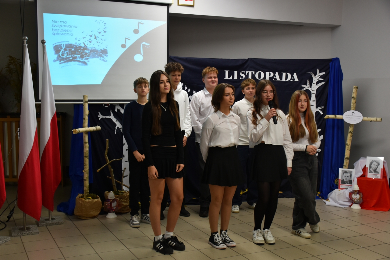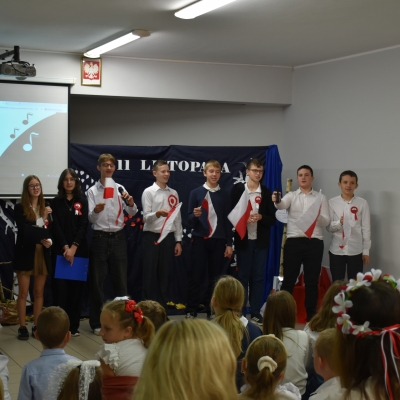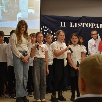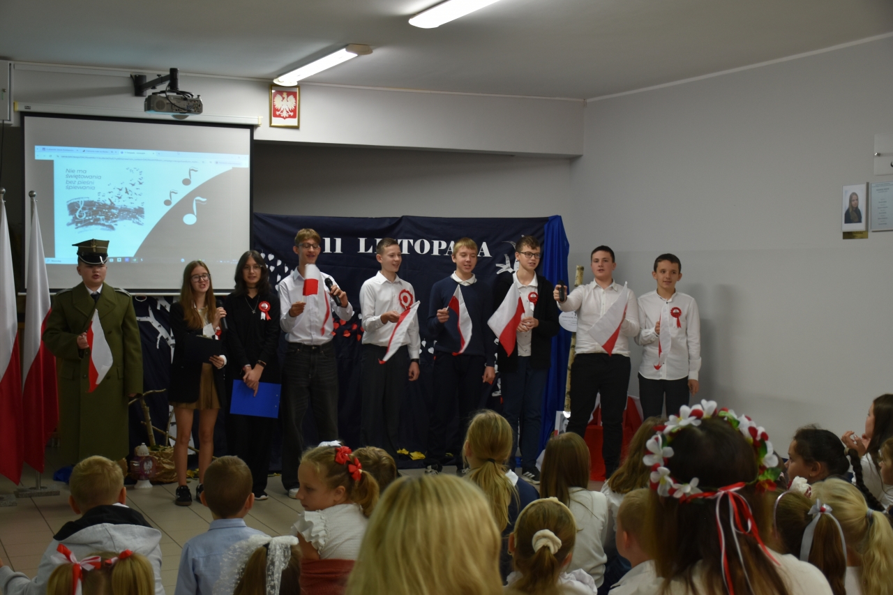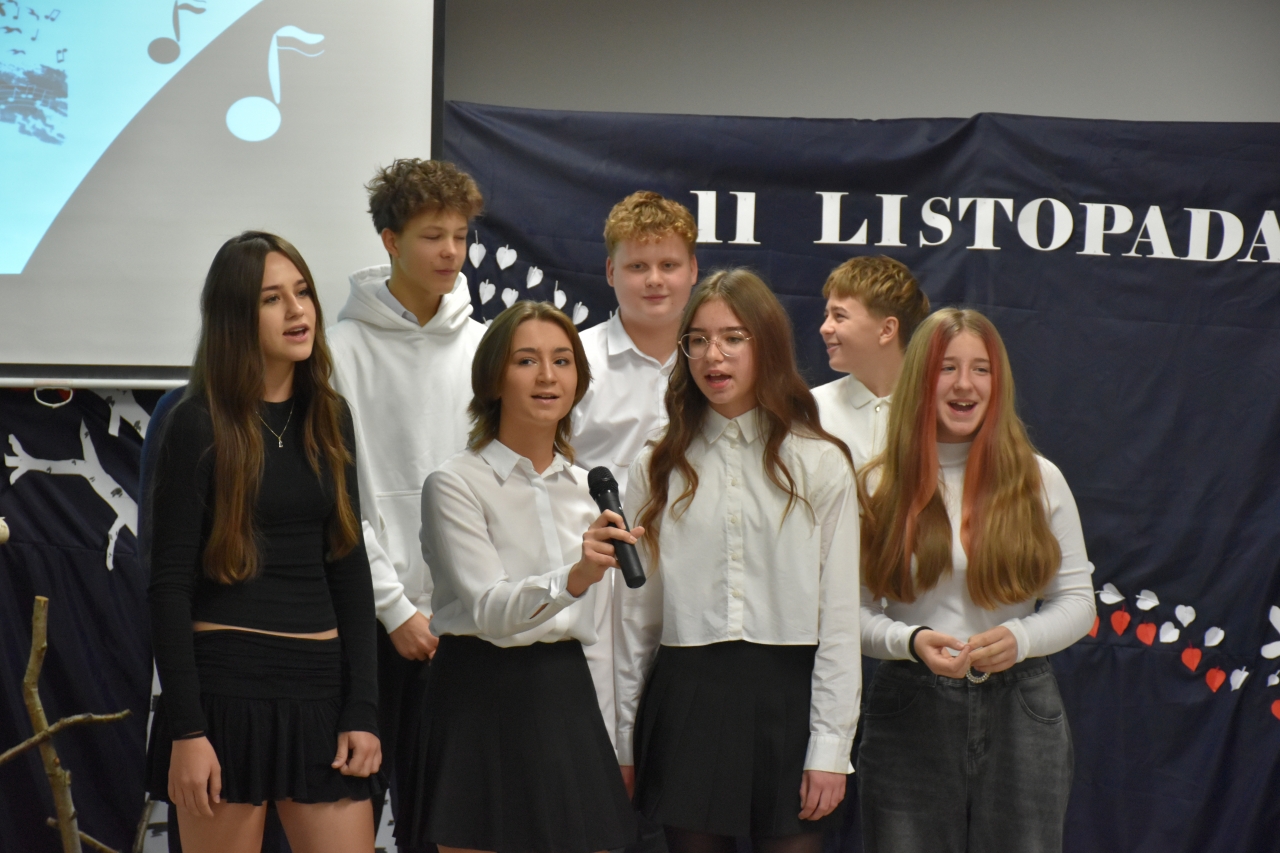 W piątek – 7 listopada, w holu szkoły odbył się uroczysty apel połączony z festiwalem pieśni patriotycznych.Ósmoklasistki prowadzące uroczystość przypomniały zgromadzonym, że niepodległość to dzieło wielu pokoleń Polaków. Dzięki ich wierze, odwadze i bohaterstwu przetrwaliśmy 123 lata zaborów, a w 1918 roku odzyskaliśmy Ojczyznę. Śpiewanie melodii wolności okazało się być doskonałą receptą na dobrą zabawę i historię w radosnym, patriotycznym klimacie.