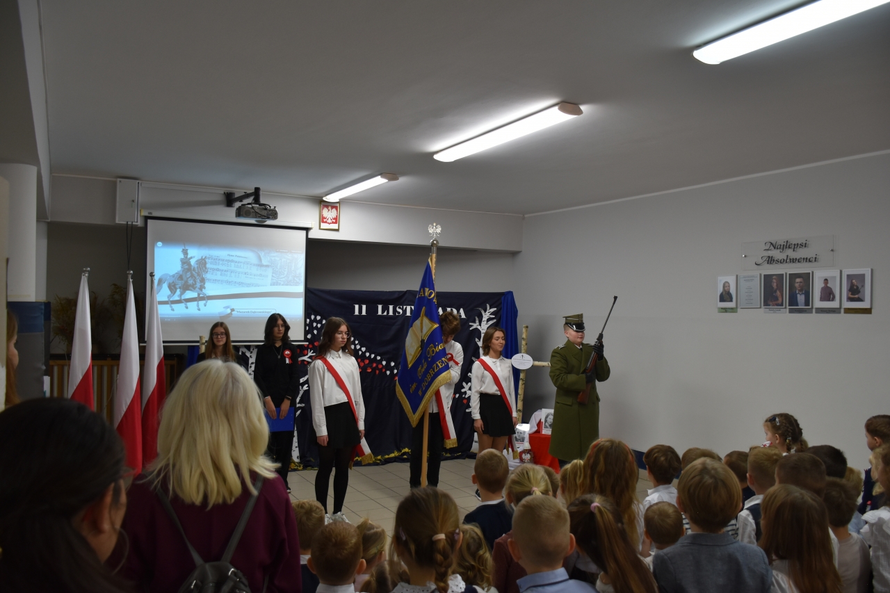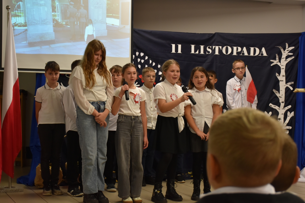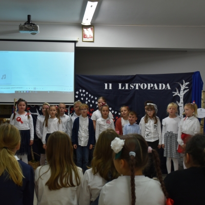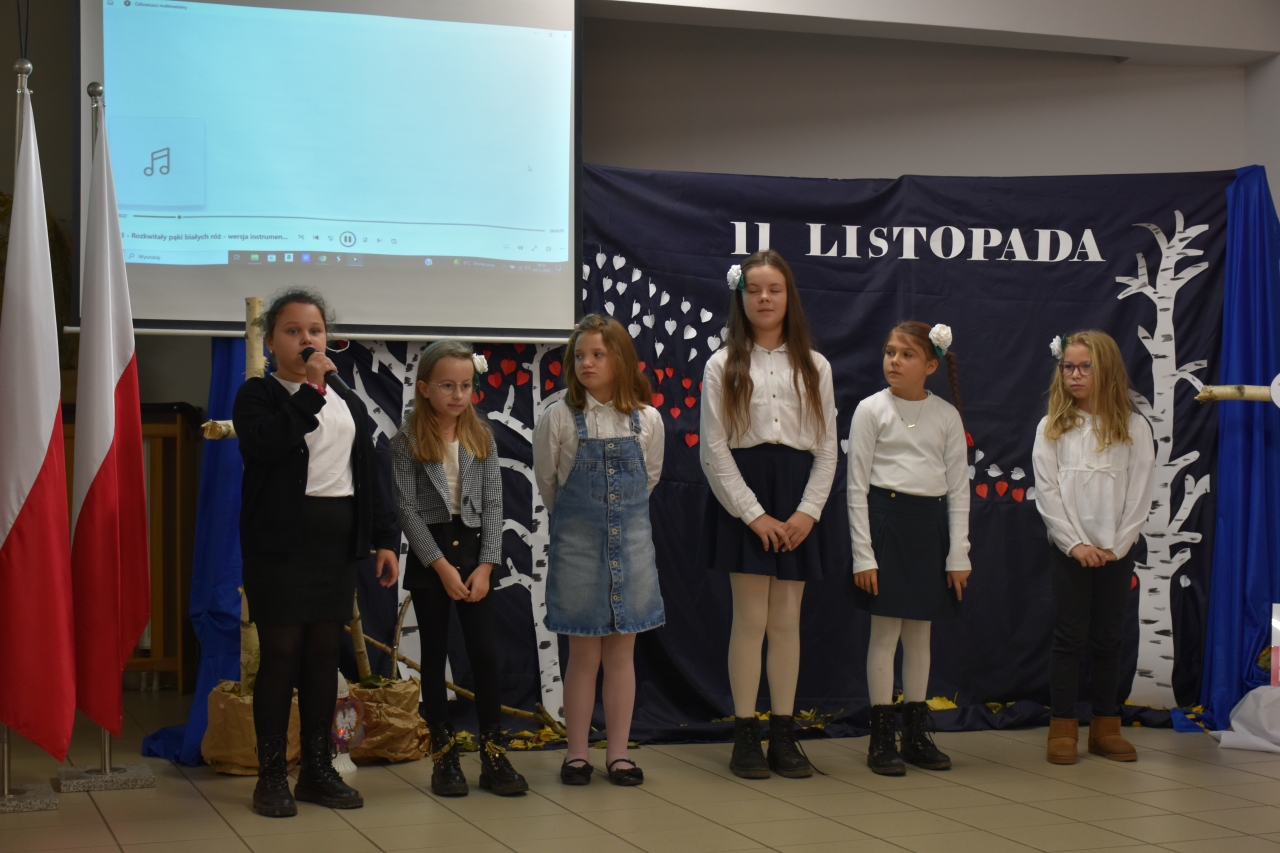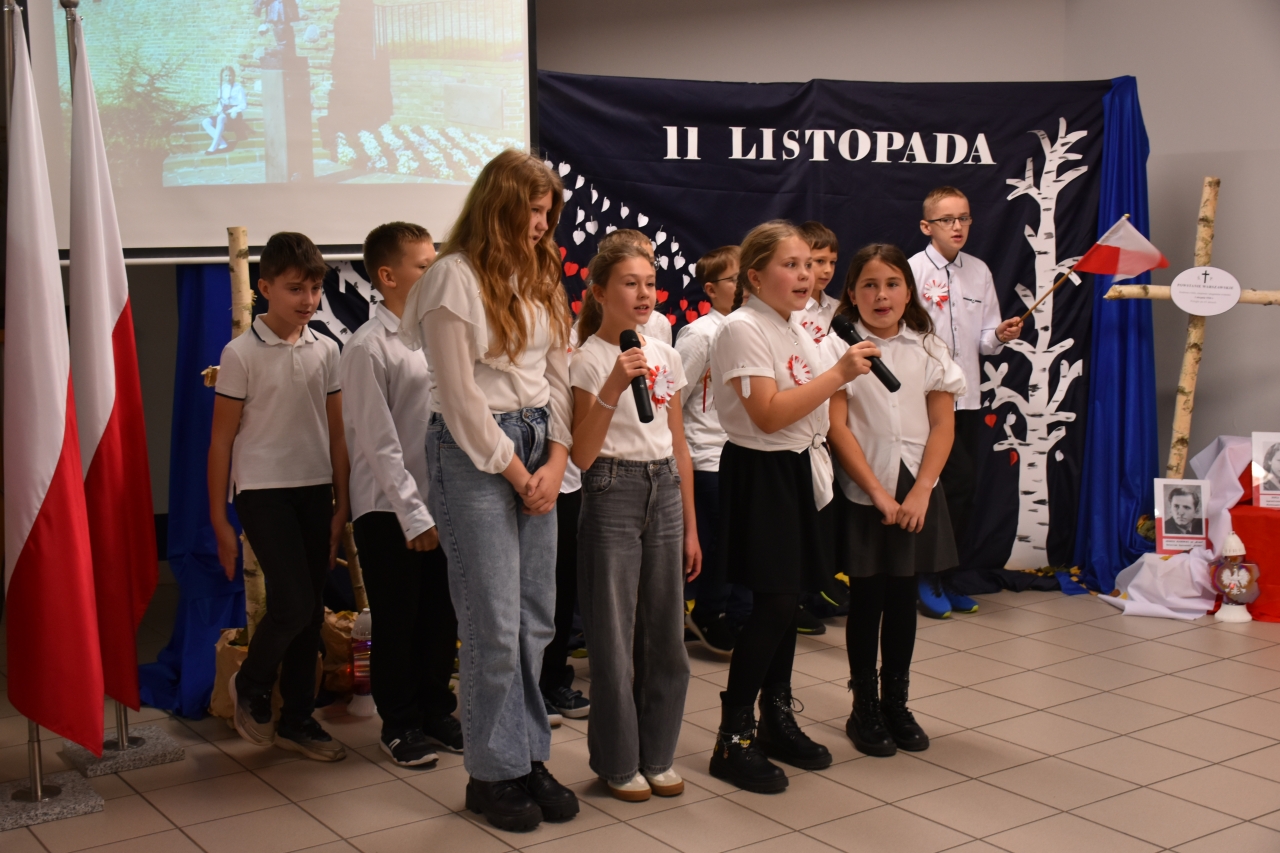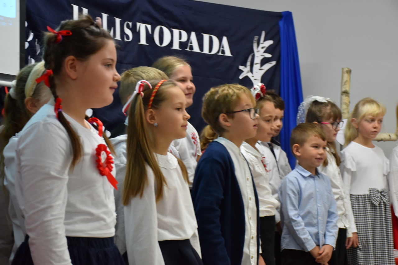 W piątek – 7 listopada, w holu szkoły odbył się uroczysty apel połączony z festiwalem pieśni patriotycznych.Ósmoklasistki prowadzące uroczystość przypomniały zgromadzonym, że niepodległość to dzieło wielu pokoleń Polaków. Dzięki ich wierze, odwadze i bohaterstwu przetrwaliśmy 123 lata zaborów, a w 1918 roku odzyskaliśmy Ojczyznę. Śpiewanie melodii wolności okazało się być doskonałą receptą na dobrą zabawę i historię w radosnym, patriotycznym klimacie.