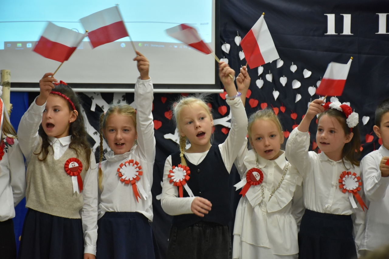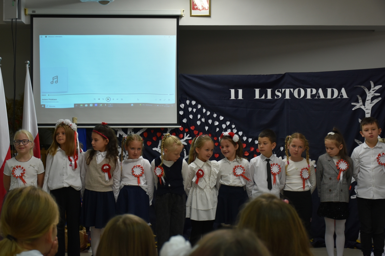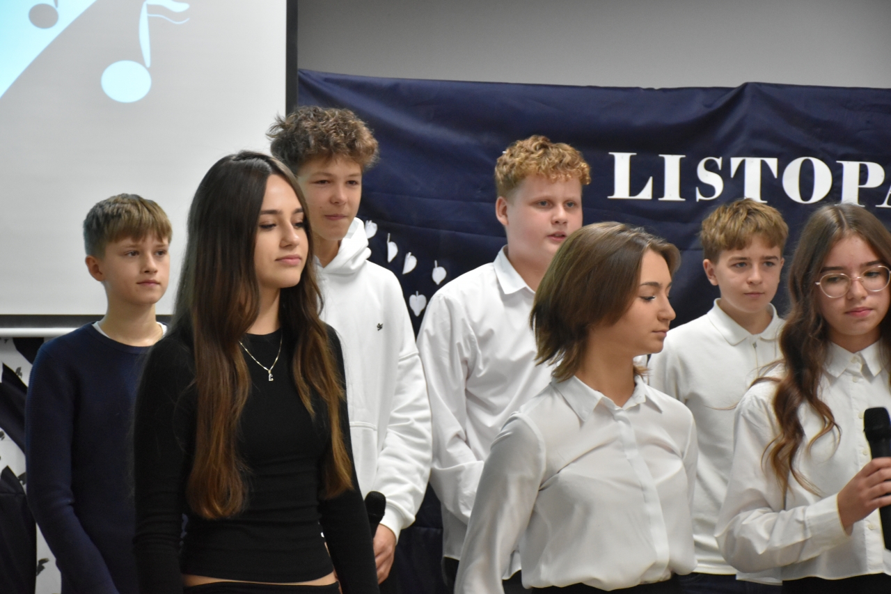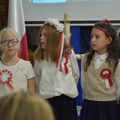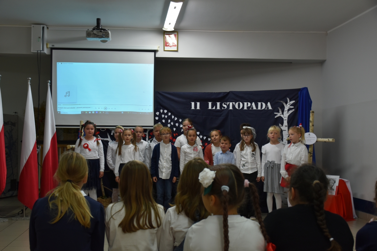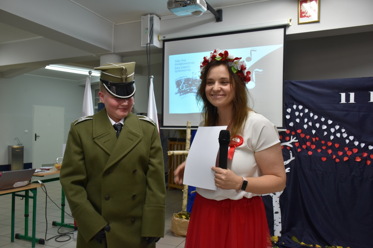 W piątek – 7 listopada, w holu szkoły odbył się uroczysty apel połączony z festiwalem pieśni patriotycznych.Ósmoklasistki prowadzące uroczystość przypomniały zgromadzonym, że niepodległość to dzieło wielu pokoleń Polaków. Dzięki ich wierze, odwadze i bohaterstwu przetrwaliśmy 123 lata zaborów, a w 1918 roku odzyskaliśmy Ojczyznę. Śpiewanie melodii wolności okazało się być doskonałą receptą na dobrą zabawę i historię w radosnym, patriotycznym klimacie.