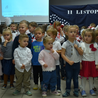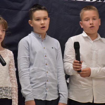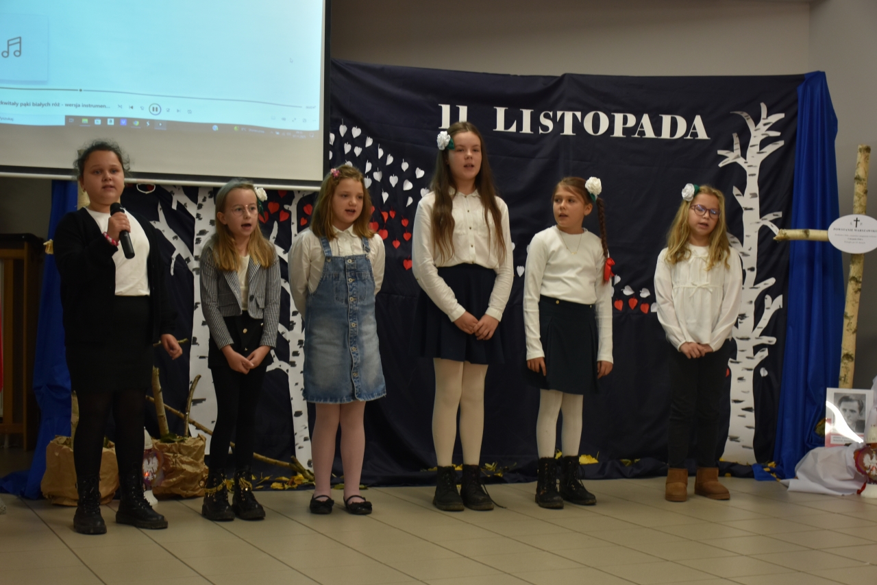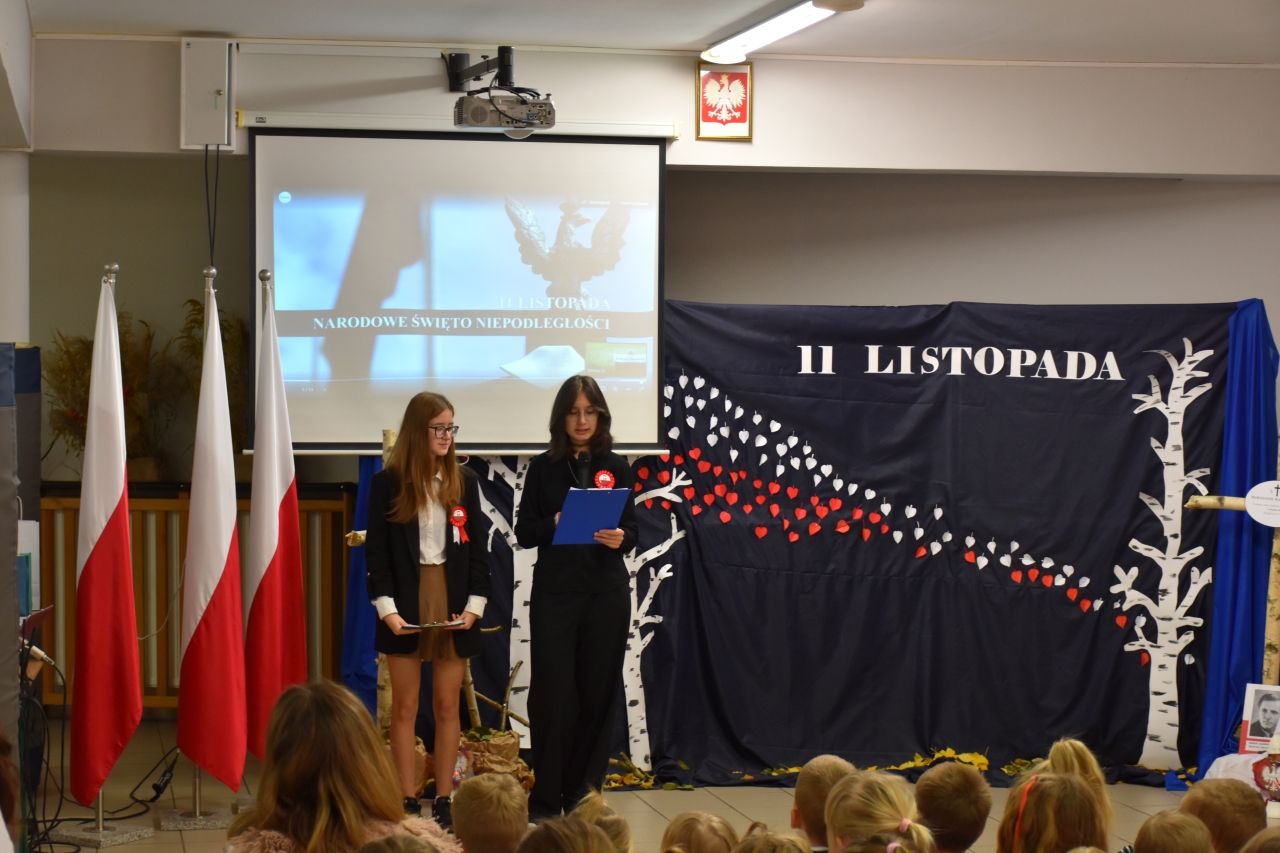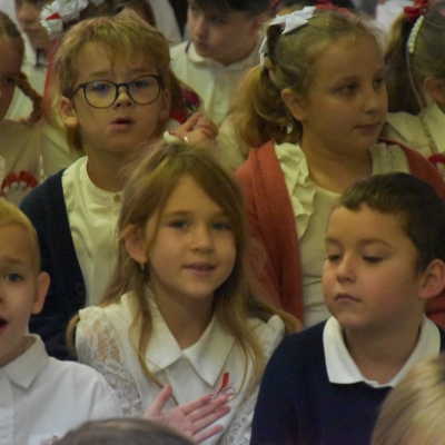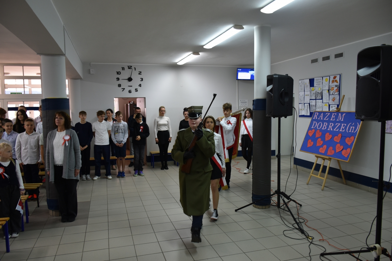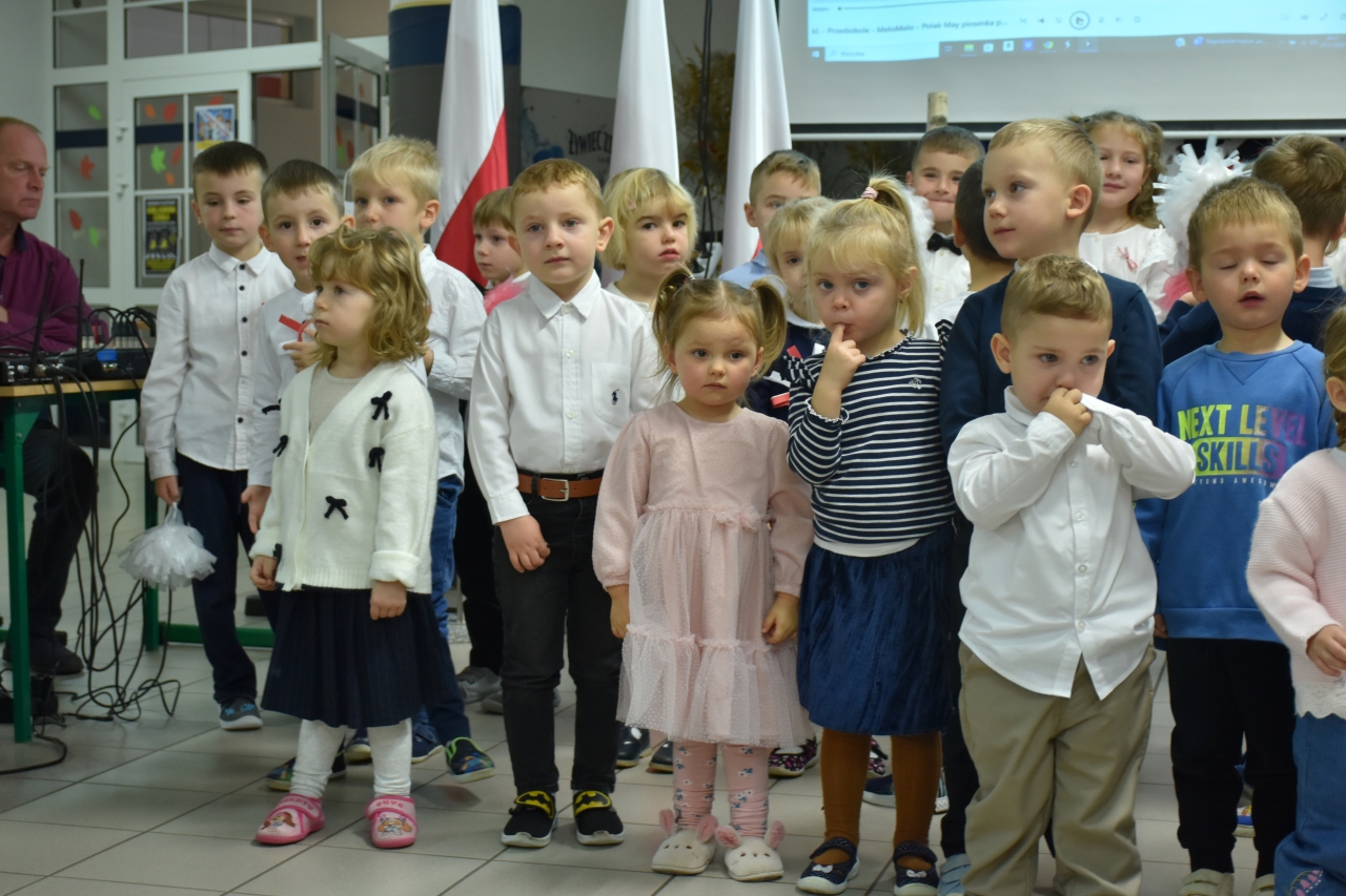 W piątek – 7 listopada, w holu szkoły odbył się uroczysty apel połączony z festiwalem pieśni patriotycznych.Ósmoklasistki prowadzące uroczystość przypomniały zgromadzonym, że niepodległość to dzieło wielu pokoleń Polaków. Dzięki ich wierze, odwadze i bohaterstwu przetrwaliśmy 123 lata zaborów, a w 1918 roku odzyskaliśmy Ojczyznę. Śpiewanie melodii wolności okazało się być doskonałą receptą na dobrą zabawę i historię w radosnym, patriotycznym klimacie.