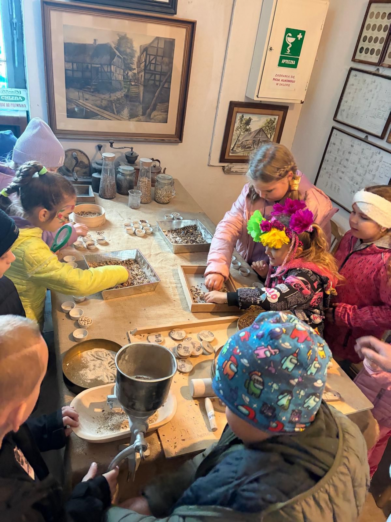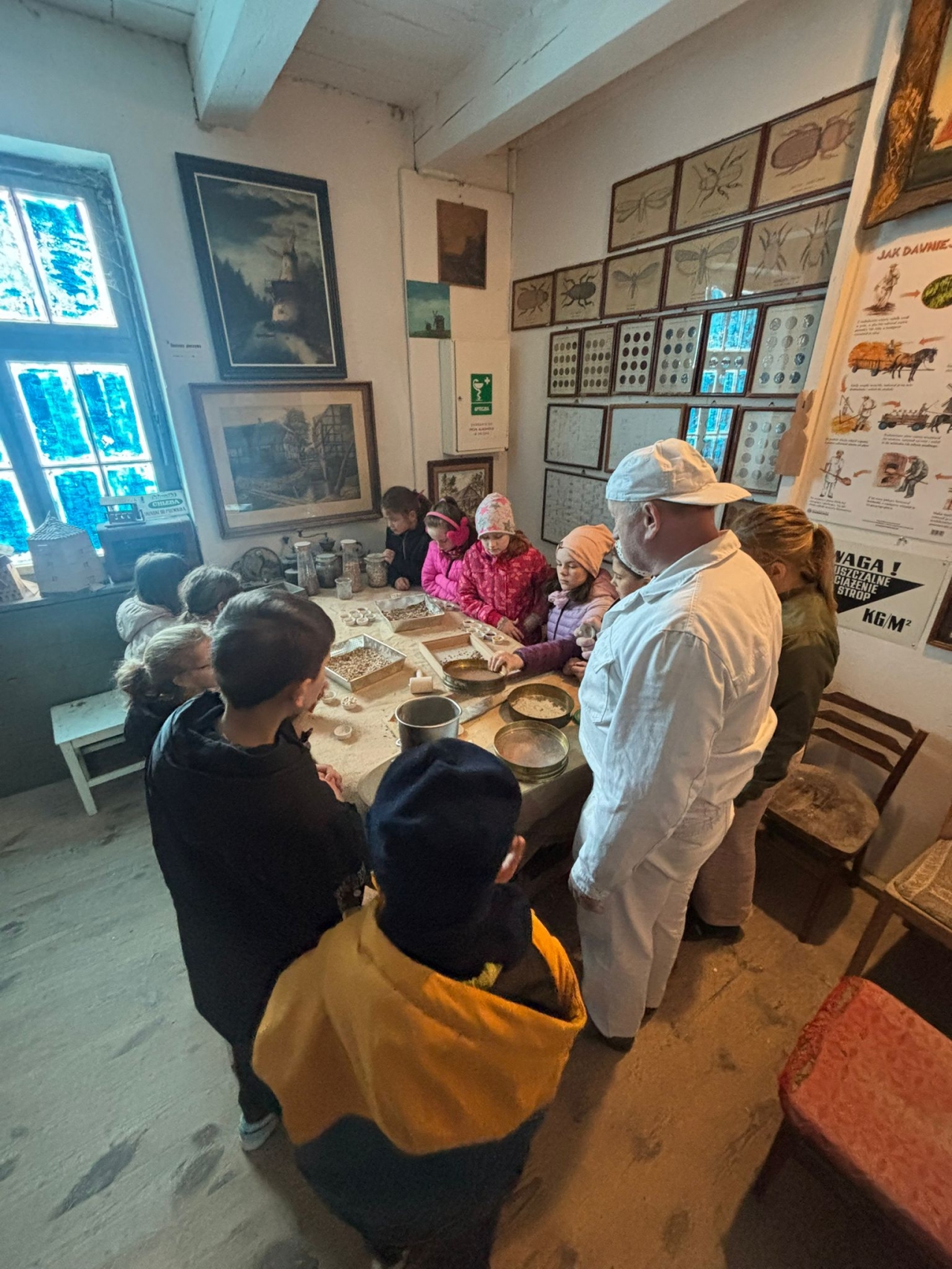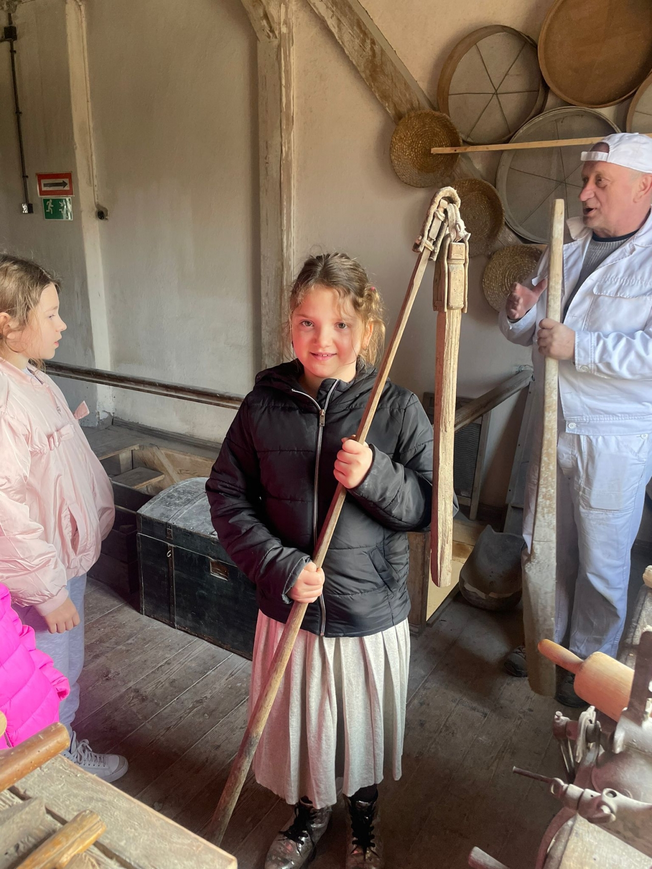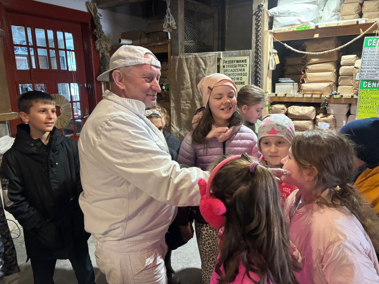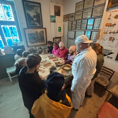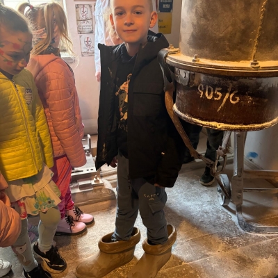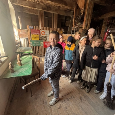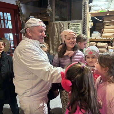 Duże zainteresowanie wzbudziły maszyny wykorzystywane w młynie oraz opowieści o różnych szkodnikach, które można tam spotkać. Dzieci z zaciekawieniem słuchały również o mieszkańcach młyna – czterech kotach, które pilnują porządku i dbają o to, aby nie pojawiali się tam niechciani goście, tacy jak myszy czy szczury. Wycieczka była nie tylko ciekawym doświadczeniem edukacyjnym, ale także świetną okazją do wspólnego spędzenia czasu i radosnego powitania wiosny. Składamy serdeczne podziękowania dla pana Ireneusza Greli, właściciela Młyna Dobra, za ciepłe przyjęcie uczniów oraz poświęcony czas.