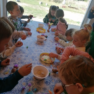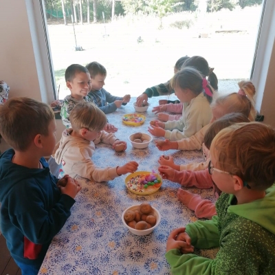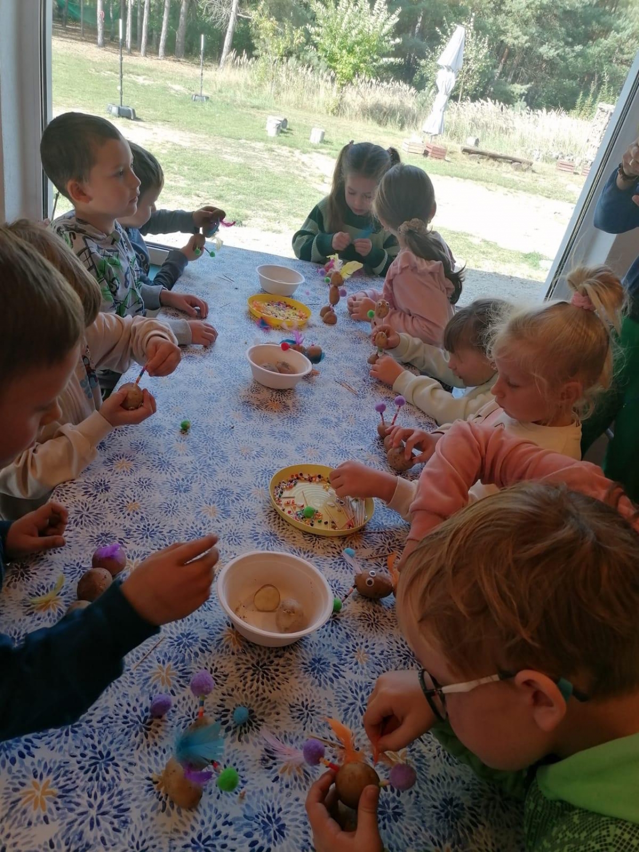 Następnie na dzieci czekały zawody sportowe oraz zajęcia plastyczne, w czasie których dzieci tworzyły figurki z ziemniaków.