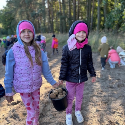 Przedszkolaki z grupy Biedronki i Motylki wzięły udział w wyjątkowej wycieczce pod hasłem „Pieczony ziemniak”.